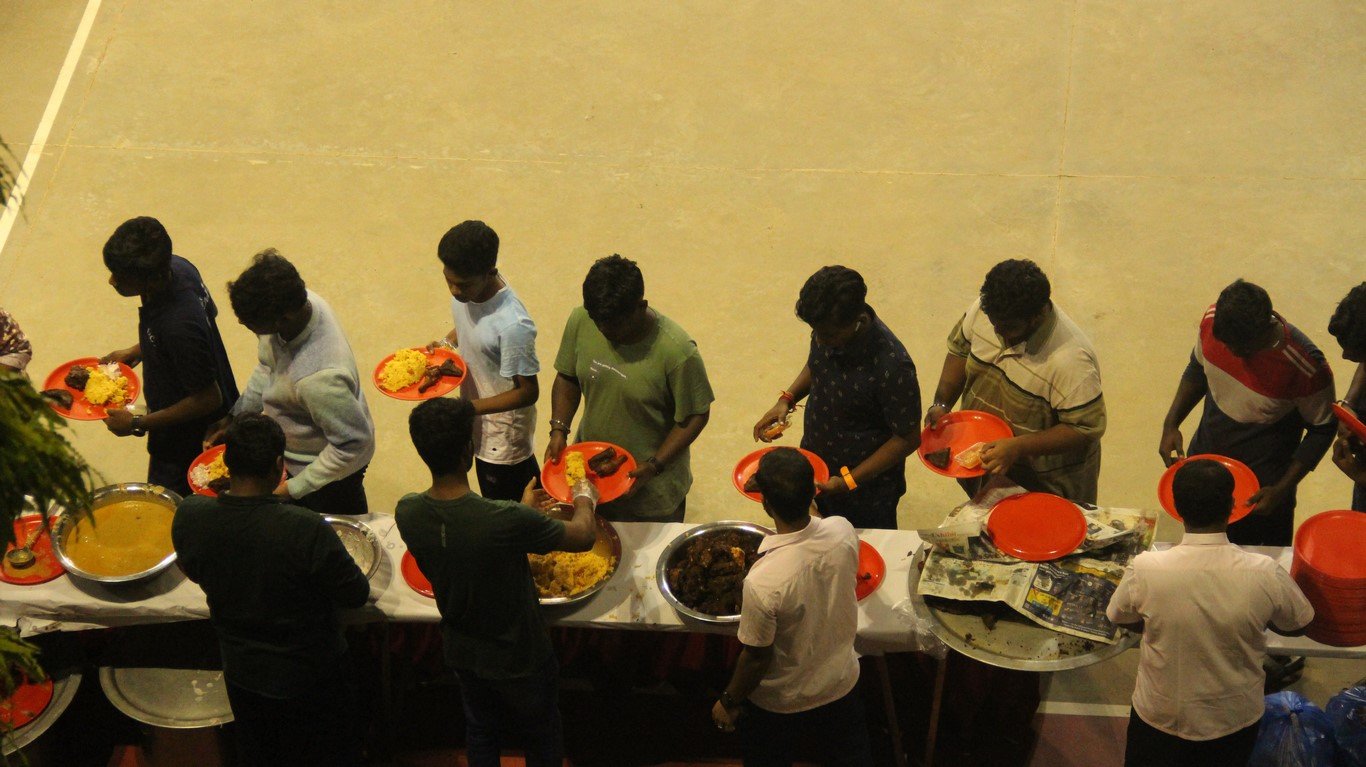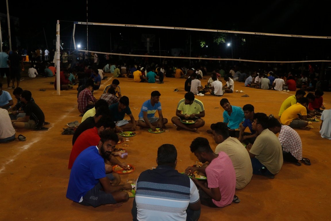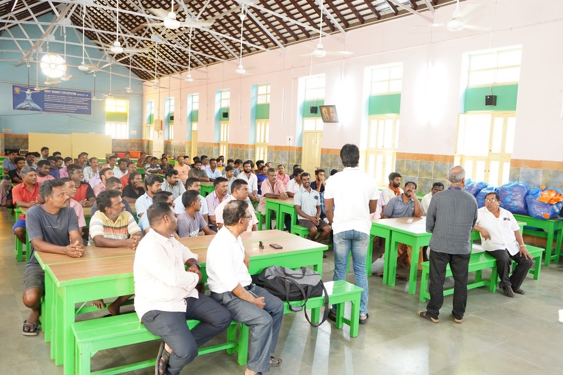 people living in the slum areas of the city of Chennai with food materials and