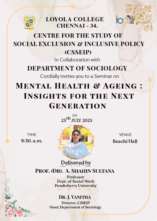 Mental Health and Ageing: Insights for the Next Generation_Seminar organised by the Department of Sociology in collaboration with the Centre for the Study of Social Exclusion and Inclusive Policy (CSSEIP) - 25th July, 2025