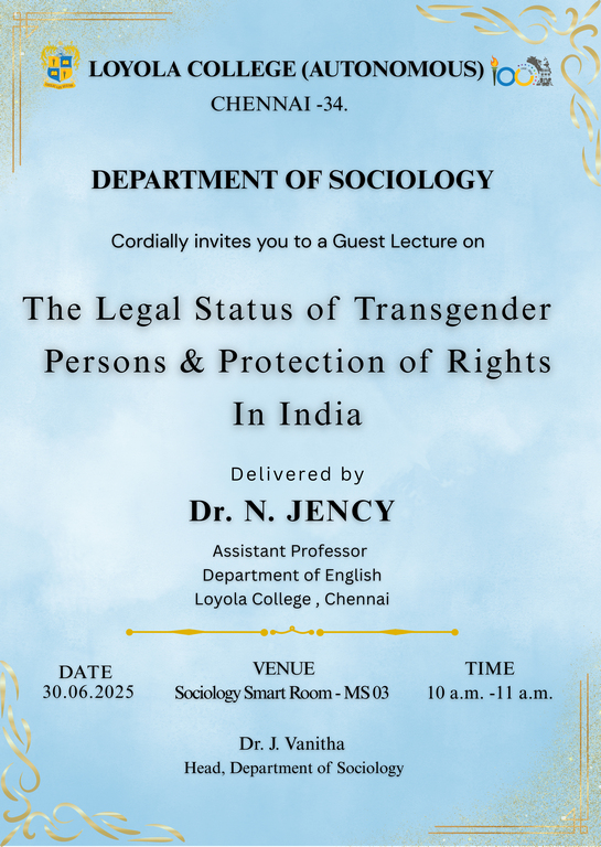 Guest Lecture on “The Legal Status of Transgender Persons & Protection of Rights in India” - 30th June, 2025